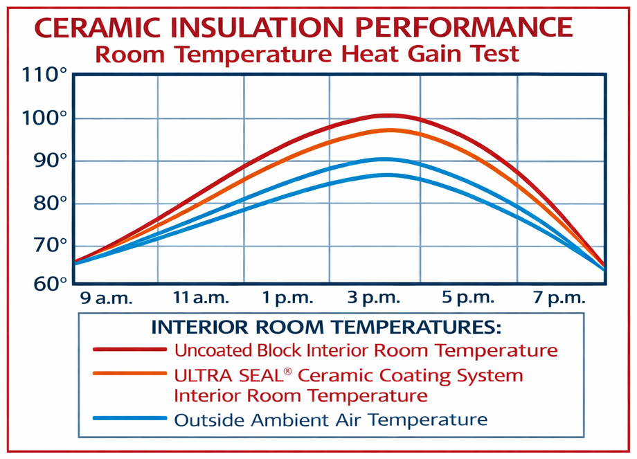 Our coatings integrate a blend of ceramic borosilicates (microscopic glass beads), and various ceramic fillers that, when combined, form a true ceramic insulator. When applied to a wall surface at 25 mils dry film thickness, it can produce an insulation equivalent of up to R-17 (4 inches of foam insulation). When this insulation equivalent is combined with the reflectance properties in our coatings, the comparable R-Value may be as high as R-24. The equivalent R-Value is directly relative to, but not limited to, the dry film thickness, the color of the coating (reflectivity), and the type of surface to which the coating is applied.